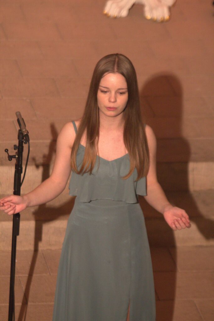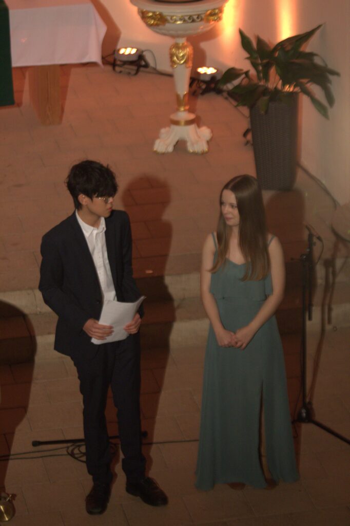 Die moderne Umsetzung verzichtete bewusst auf aufwendige Kulissen oder Kostüme, der Innenhof mit Empore und dem darunter liegenden Säulengang sowie seinen Beeten lieferte den passenden Hintergrund zu den ausgewählten Szenen. Der Fokus lag ganz auf Sprache, Ausdruck und Körperspiel – und gerade das machte die Wirkung der Aufführung aus. Trotz kurzfristiger Umbesetzungen wirkte das Spiel konzentriert, sicher und geschlossen.